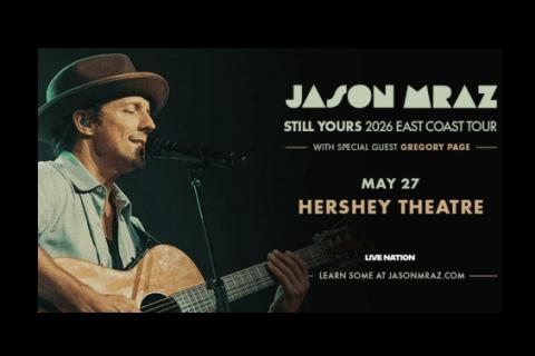 Multi-platinum recording artist Jason Mraz today announced “Still Yours,” a 2026 run of tour dates across the East Coast, including a show at Hershey Theatre.